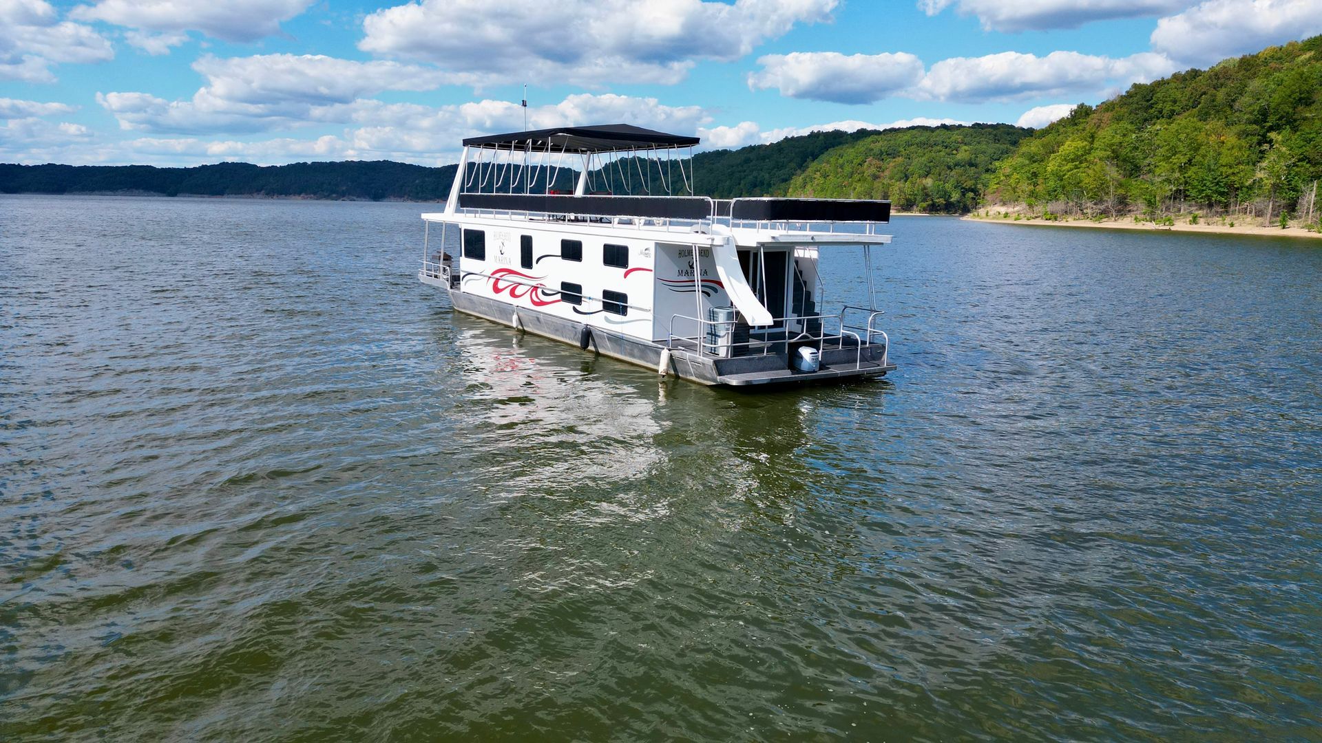 The Commodore is packed with premium features to enhance your stay, including a cuddy cabin, deluxe carpeting, and a full range of kitchen appliances such as a microwave, gas range, and refrigerator. Guests will enjoy the spacious deck furniture, ceiling fan, and the large sundeck, perfect for sunbathing and enjoying the views. With ample space, modern comforts, and water activities like the 15-foot water slide, this houseboat is designed to make every moment unforgettable.